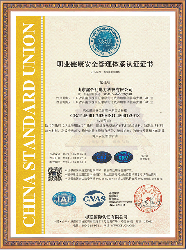 山東鑫合利職業健康安全管理體系認證證書